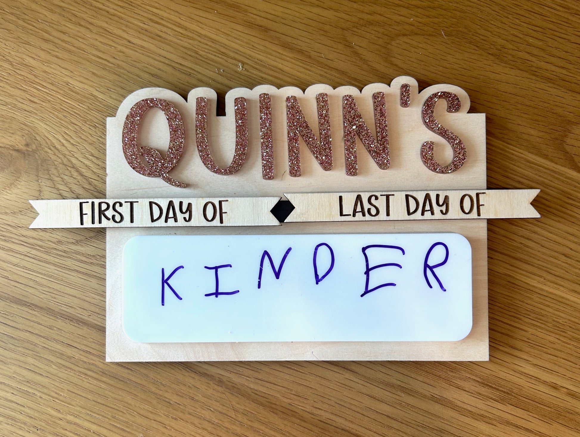 This fun mini sign can be used for the first/last day of school, or any other activity. Use a white board marker to write down the new event, then erase to use again! "First Day" and "Last day" signs are interchangeable, held in place by a magnet. Also includes a magnet on the back for storage of your unused piece.