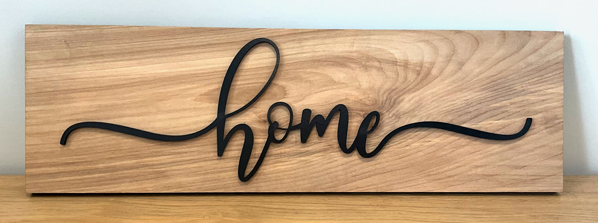 This simple sign is simply beautiful! Measures 18x5.5" on a 1/2" base.