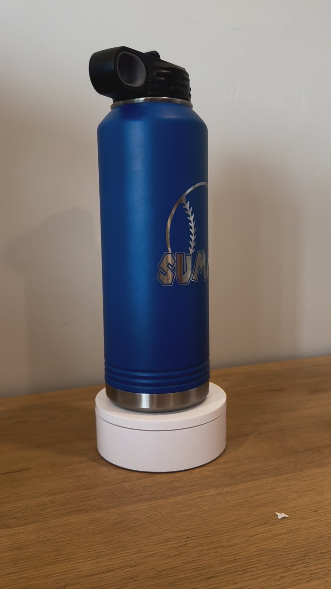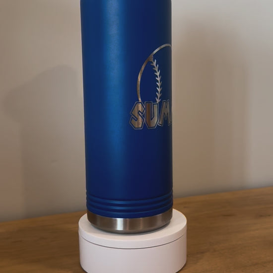 40oz royal blue Polar Camel water bottle. Dual-sided engrave, featuring the Summit softball logo with a softball on one side and the player’s name/number on the other. Available with or without personalization.