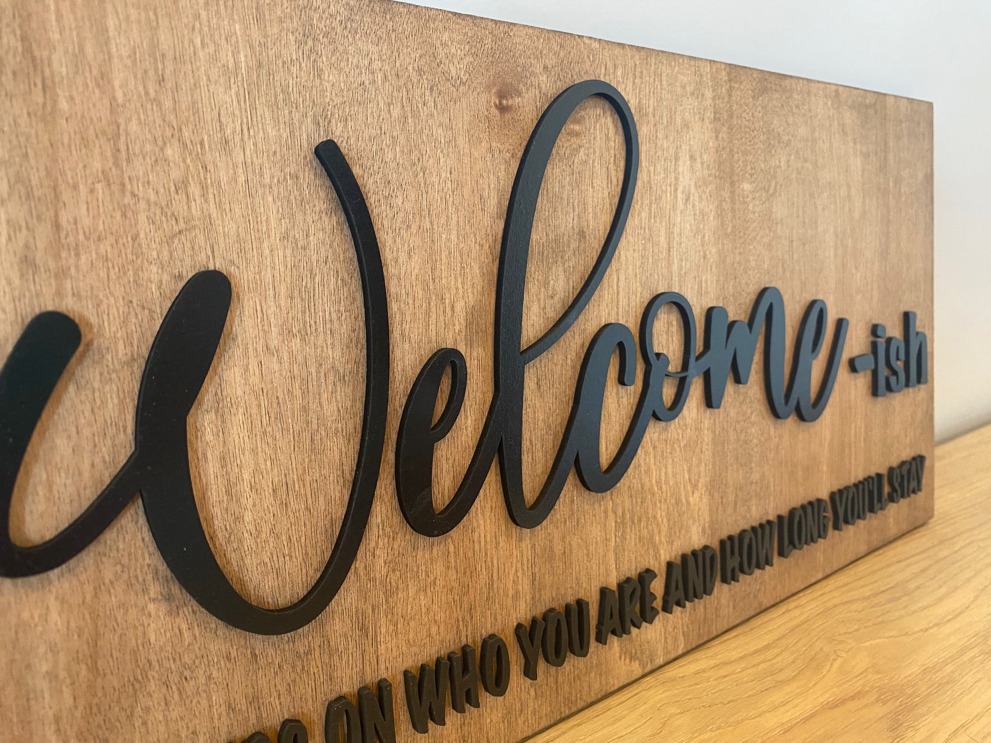 Sounds about right! This fun sign measures 18x9" on a 1/2" base.